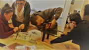 Avant d'imprimer, il faut monter la machine. Nous avons reçu la Foldarap imaginée par Emmanuel Gilloz. Cette imprimante 3D compacte et pliable a l'avantage d'être portable. Pour se guider, les stagiaires se rendent sur le wiki dédié à la bête.